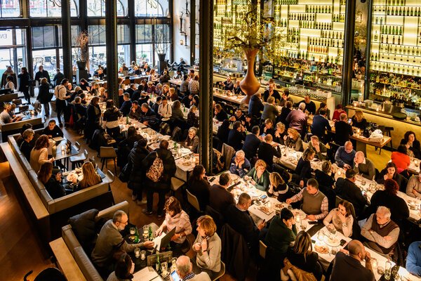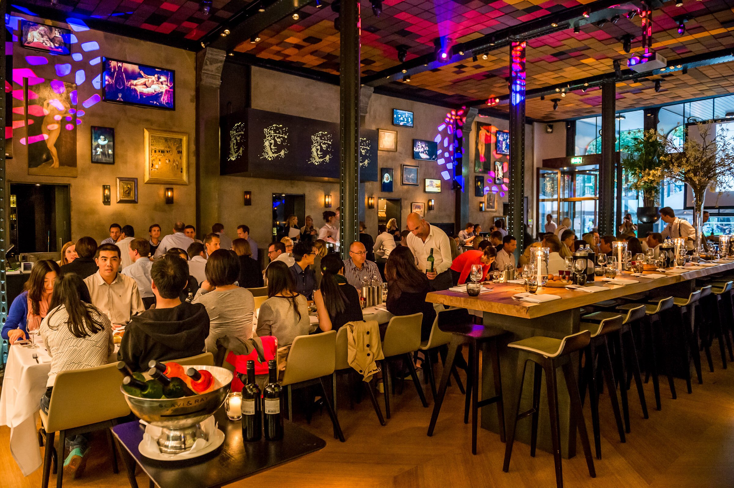 Ervaar een diner in grootse stijl in de hoofdzaal van Kitchen & Bar Van Rijn. Deze prachtige ruimte met hoge plafonds biedt een verfijnd en artistiek decor voor uw meest indrukwekkende evenementen.